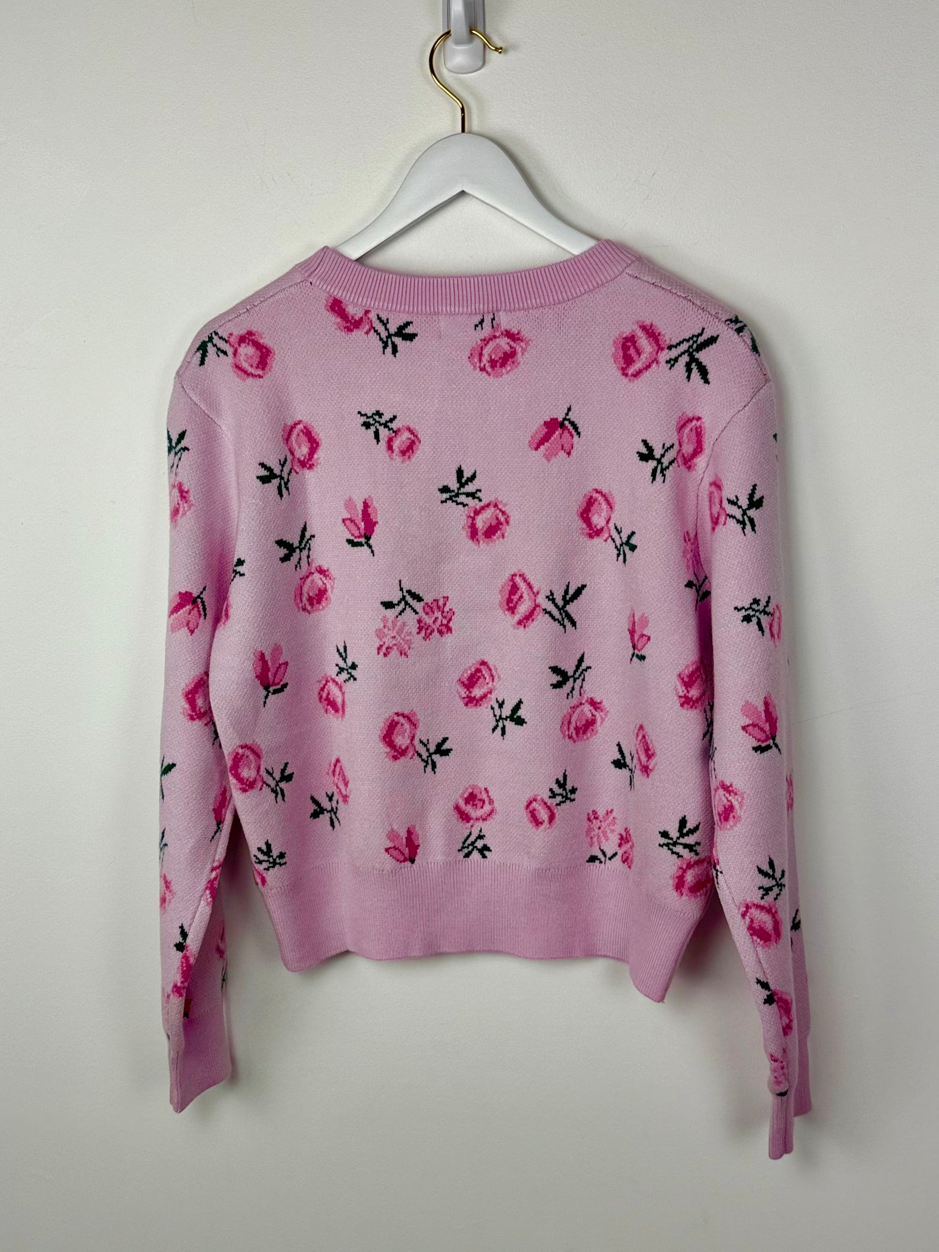Romance in Bloom-Pink on Pink Roses Cropped Sweater