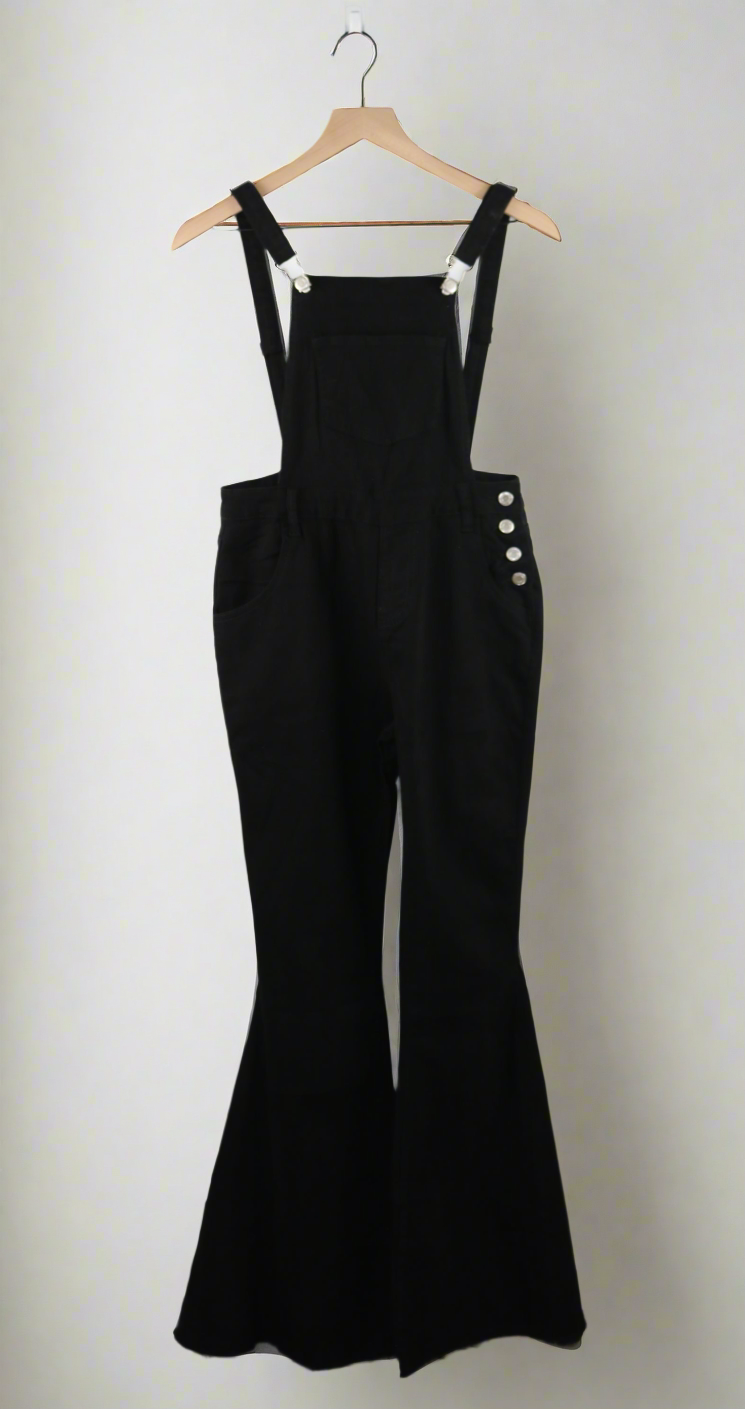 Description: Turn up the style volume with these Bellbottom Denim Overalls! These overalls feature a stretchy fit for all-day comfort and an extreme flare for a bold, retro look. Adjustable strap allows for perfect fit. Say yes to the bellbottom trend!